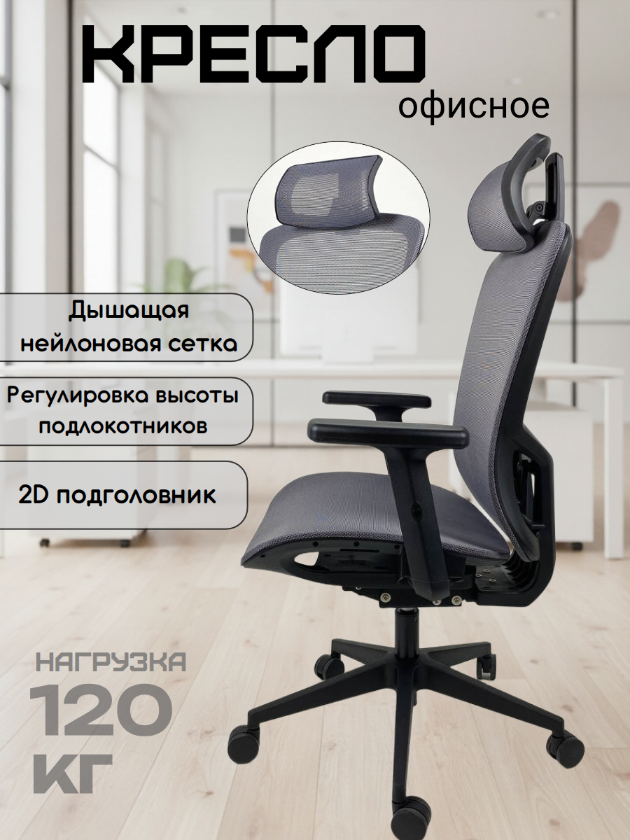 Для поддержки правильной посадки предусмотрены 2D подголовник (регулируемый) и регулируемая поясничная поддержка — это помогает снизить нагрузку на шею и поясницу. Надежная крестовина из металла и прочная конструкция рассчитаны на нагрузку до 120 кг, пластиковые колесики подходят для ежедневного использования.